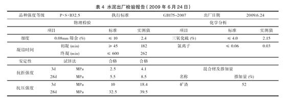 ?。?)材料:水泥:6月24日進場PSB32.5;高效減水劑:沈陽產,系前期水泥正常使用的品牌。