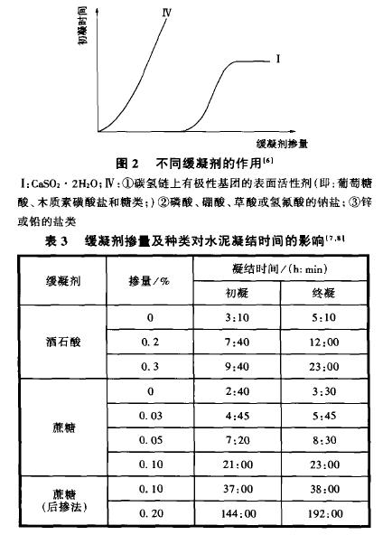 合適的凝結時間為混凝土施工所必需。對于預拌混凝土,一般要求初凝時間為4—1Oh,終凝時間為10~15h。但在預拌混凝土生產和施工過程中,有時會出現混凝土凝結時間過長的現象,即超緩凝;有時甚至會出現混凝土幾天不凝結的現象。本文擬討論水泥和緩凝劑對混凝土凝結時間的影響,并兼論預拌混凝土產生超緩凝的原因及其預防。