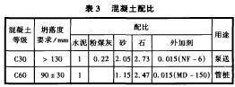 本試驗按預拌混凝土和管樁混凝土實際生產所用的配比,見表3。其中水泥、粉煤灰、砂、石及外加劑固定,調整水灰比到相同的坍落度,然后成型。