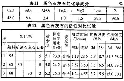 2.2 黑色石灰石的試驗結果見表ll一表15