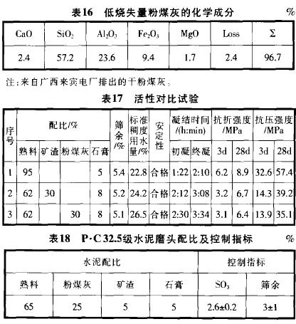 2.3 低燒失量粉煤灰的試驗結果見表16-表2O