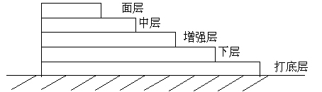 | 適用范圍:一般用于廁浴間、地下室、隧道、水池等防水工程。 工法三:總用料量:3.1㎏/㎡, 厚度:約1.5㎜。 施工工序:打底層→下層→增強(qiáng)層→中層→面層 每層用量:0.4㎏/㎡ 0.9㎏/㎡ 0.9㎏/㎡ 0.9㎏/㎡ 涂層結(jié)構(gòu): |
