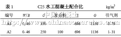 針對水利工程常用的C25 等級混凝土進(jìn)行試驗(yàn)研究,研究長期力學(xué)性能和抗凍性、抗?jié)B性等耐久性能。試驗(yàn)遵守SL 352 - 2006《水工混凝土試驗(yàn)規(guī)程》,具體配合比見表1。