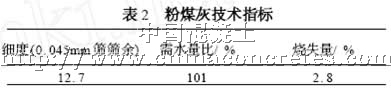 (2) 粉煤灰,濟南黃臺電廠產Ⅱ級粉煤灰,技術指標見表2 。