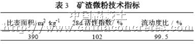 (3) 礦渣微粉,濟南某粉磨站產S95 礦渣微粉,技術指標見表3 。
