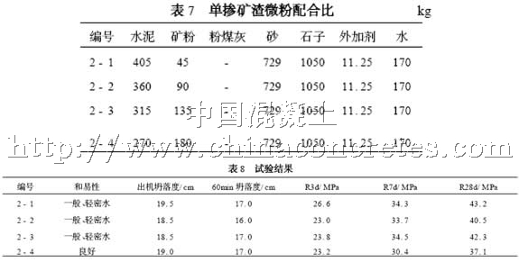 2. 2. 1 單摻礦渣微粉配合比試驗