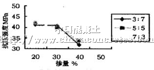 粉煤灰、礦渣微粉均為活性礦物摻和料,二者的填充效應、微集料效應、在堿性激發劑作用下的火山灰效應,均可增加混凝土的密實性,提高混凝土的后期強度,由于粉煤灰的活性較低,活性物質含量較少,火山灰效應較遲緩,因此,摻粉煤灰混凝土的強度發展較慢,早期強度較低,礦渣微粉具有比粉煤灰更大的化學內能和化學活性,因此,礦渣微粉混凝土的中后期強度高于粉煤灰混凝土。粉煤灰、礦渣微粉復合使用,可發揮二者的強度互補效應,對硬化混凝土,早期發揮礦渣微粉活性高、火山灰效應較快,后期發揮粉煤灰的緩慢火山灰效應,改善漿體和集料的界面結構,使混凝土結構密實,強度持續提高。