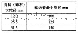 2.3 泵 送 混凝土輸送管徑的大小,決定了粗集料最大粒徑(方孔篩),其兩者之間的關系見表3表 3 水 泥混凝土輸送管徑與粗骨料最大粒徑的關系