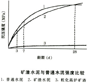 圖 1 硅酸鹽和鋁酸鹽水泥混合體的初凝時間 實驗表明,硅酸鹽水泥和鋁酸鹽水泥直接混合使用時,會在很大的混合比例區間內,凝結迅速,而無法正常使用。其原因在于:—方面,鋁酸鹽水泥在溫度低于 30 ℃ 時,水化生成的 CAH 10 和 C 2 AH 8 屬于亞穩晶系,會快速與硅酸鹽水泥生成的 Ca(OH) 2 發生反應,生成屬于穩定晶系、強度很低的 C 3 AH 6 晶體,加速凝結。同時生成的 C 3 AH 6 在水溶液中會與硅酸鹽水泥中起緩凝作用的石膏反應生成鈣礬石,石膏的消耗導致硅酸鹽水泥中的 C 3 A 水化反應迅速進行,從而加速了體系的凝結硬化;另一方面,當反應溫度在 30 ℃ 以上時,鋁酸鹽水泥的水化產物為 C 3 AH 6 會迅速消耗硅酸鹽水泥中的石膏,加速硅酸鹽水泥的水化,造成凝結時間過快。因此,需要添加合適的緩凝劑,延長灌漿料的凝結時間。本文通過實驗研究了不同的緩凝劑對灌漿料的凝結時間、流動性能和強度的影響,結果見表 3 。 表 3 緩凝劑對凝結時間及其它性能的影響