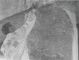 混凝土修補(bǔ)施工示例 1 :清除破損的混凝土面層直至露出堅(jiān)固的混凝土(注意不得損壞鋼筋) |