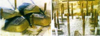 4 .將拌合好的座漿料注入已就位的模體內(nèi),澆筑時(shí)應(yīng)分層搗固,每層厚度宜控制在 50mm 左右,漿料表層形狀應(yīng)是中間高四周低的弧形,以利于放置墊板時(shí)排出空氣。