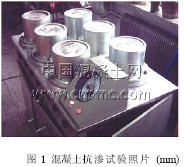 本試驗(yàn)是根據(jù)GB/T50081-2002《普通混凝土力學(xué)性能試驗(yàn)方法標(biāo)準(zhǔn)》普通混凝土抗?jié)B試驗(yàn)方法[3],將試模標(biāo)準(zhǔn)養(yǎng)護(hù)至28d 后,在混凝土滲透儀上水壓從0.1N/mm2 開始,每隔8h增加水壓0.1N/mm2 并隨時注意觀察試件端面情況,一直加至6 個試件中有三個試件表面發(fā)現(xiàn)滲水,記下此時的水壓力,即可停止試驗(yàn)?;炷量?jié)B等級按下式進(jìn)行計(jì)算:
