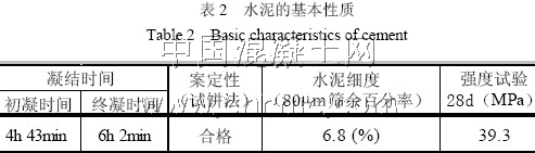試驗(yàn)用水泥采用阜新鷹山水泥廠生產(chǎn)的鷹山牌32.5 號礦渣水泥。水泥基本性質(zhì)見表2。