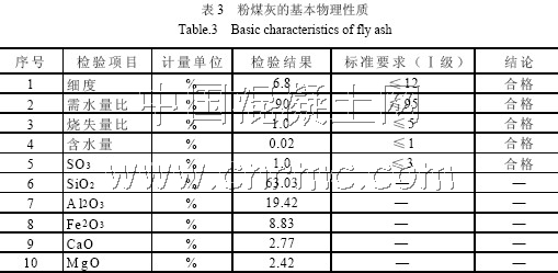 粉煤灰采用阜新鑫源粉煤灰建筑材料有限責(zé)任公司生產(chǎn)的Ⅰ級粉煤灰。粉煤灰的基本物理性質(zhì)表示在表3。
