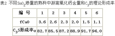 關鍵詞:SnO2,熟料燒成,C3S,硅酸鹽水泥