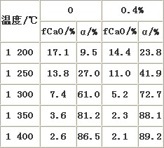 表2是用乙醇-乙二醇法測出的A組各個試樣的fCaO含量和根據fCaO含量計算出的C3S的理論形成率。