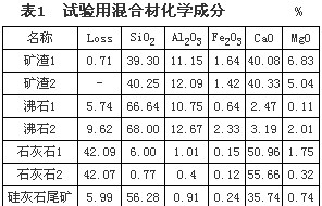 試驗所用各種混合材的化學成分列于表1。
