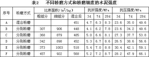 1)由于采用了分別粉磨方式,可根據需要調整水泥中粗細顆粒的比例和細度,使水泥中的細粒子更好地填充在粗顆粒所包圍的空隙內,有利于水泥漿體形成較致密的結構。這與國外研制超高強水泥的作用機理有相似之處。