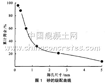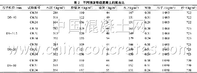 混凝土的抗壓強度不僅取決于其水膠比,還取決于其粗集料的級配。對高水膠比的混凝土而言,宜采用較大粒徑的粗集料,以減小粗集料的總表面積;而對低水膠比的}昆凝土而言,宜采用較小粒徑的粗集料,以減小粗集料周圍尤其是底部的泌水趨勢,從而提高過渡區的品質j并提高混凝土的強度。