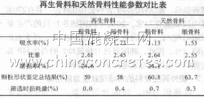 再生骨料是指將建筑垃圾進行物理或化學處理,使其成為符合有關規定和質量標準的混凝土骨料 再生骨料具有與天然石子接近的物理和力學性能,是一種比較理想的配制低、強度中等的再生混凝土材料,可廣泛用于道路工程、市政工程和房屋建筑工程。研究表明,僅采用再生粗骨料制成的再生混凝土.其性能與普通混凝土相差無幾。同時國內有關的試驗數據也表明,應用再生骨料的棍凝土具有拌和物流動性低.牯聚性、保水性好等特點,并且在同配合比的條件下,應用再生骨料的混凝土立方體抗壓強度還有一定的增加。此外,韓國一家再生骨料生產公司所生產的再生骨料和天然骨料的性能參數對比數據,也表明用再生骨料代替天然骨料配制混凝土是可行的(見下表)。