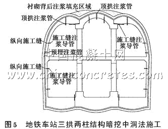 2.3 地鐵車站三拱兩柱結構暗挖中洞施工工藝