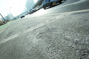 北京經受了59年來最大降雪之后,有讀者反映,二環主路上出現了大小、形狀不一的坑槽,行車會明顯地顛簸,有些車輛為避讓坑槽緊急減速,給行車造成安全隱患?!鞍蠢碚f二環路大修沒幾年呀,不會這么快就變搓板路啊。”讀者趙女士說。