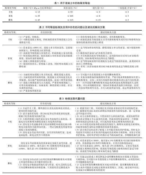 標(biāo)準(zhǔn)中規(guī)定:Ⅰ、Ⅱ級(jí)粉煤灰基本不受混凝土強(qiáng)度等級(jí)與種類的限制;Ⅲ級(jí)粉煤灰主要用于無(wú)筋混凝土。
