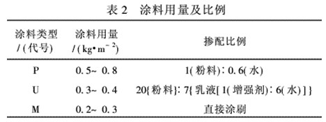 (2)水泥基滲透非結晶型防水材料[7]:施而固US-1510防水涂料,藍灰色粉狀固體加白色乳液,北京領邦施而固新材料股份有限公司生產,用代號“U”表示。