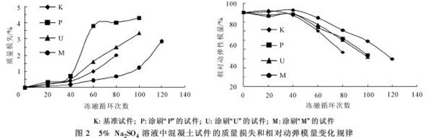 2.2在5%Na2SO4溶液中涂料對混凝土抗鹽凍性的影響