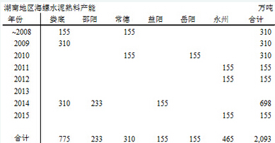 ——從年度分布上看,以水泥地理掌握的海螺在湖南2014年投產(chǎn)、在建線以及目前已公布的收購(gòu)事項(xiàng)中,海螺2014~2015年合計(jì)增加850萬(wàn)噸產(chǎn)能,占其在湖南總產(chǎn)能的40%。