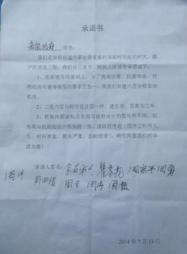 李翔說,自家房屋被拆后,他從當地相關部門了解到,村民自建房“只能按照磚混結構修建”。而100多戶村民聯名要求修建混凝土框架結構的申請,被以“防止以后加層改建”、“防止以后商業化”為由遭到拒絕。