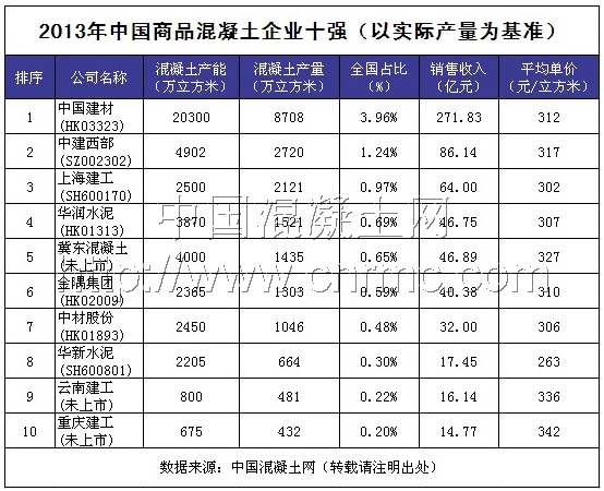 入圍所需數據:2014年全國商品混凝土企業十強評選資料表