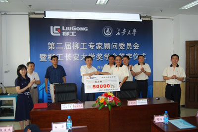 在本次研討會期間,柳工還邀請與會嘉賓到長安大學參加了柳工長安大學獎學金簽字儀式。幾年前柳工就在長安大學工程機械學院設立了“柳工獎學金”。這次柳工又加大了對長安大學的獎助力度,在公路學院等公路交通類專業增設柳工長安大學獎學金。這標志著柳工與長安大學新的合作的開始,實現了校企之間資源共享、優勢互補。簽字儀式上,長安大學黨委副書記白華、廣西柳工集團公司副總裁閉海東、中國工程機械工業協會俞琚秘書長分別致詞,俞琚秘書長強調說,著眼于全球發展和未來發展,中國工程機械企業要做大做強,要走的路還很長,人才培養應放在第一位。柳工能高瞻望遠矚地設立長安大學獎學金,培養專業人才,具有十分深遠的意義。同時,俞琚呼吁行業內的其他企業也應向柳工學習,走產學研相結合之路。