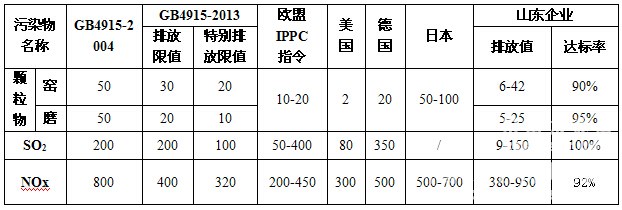表4 水泥污染物排放指標對比表 單位:mg/m3