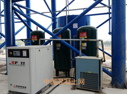 采用螺桿空壓機,可避免活塞式空壓機產生的噪音。采用空壓機送水泥系統,減少水泥罐車送灰產生的噪音。