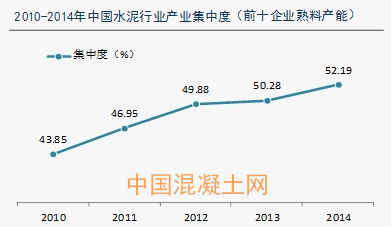為貫徹國務(wù)院41號文件精神,化解水泥行業(yè)產(chǎn)能過剩矛盾,遏制新增產(chǎn)能,在2014年年初,中國建材聯(lián)合會和中國水泥協(xié)會聯(lián)合發(fā)布了《水泥行業(yè)推進兼并重組實施意見》,提出,加快推進水泥行業(yè)兼并重組是行業(yè)轉(zhuǎn)型升級的必然選擇。到“十二五”末,前十大水泥企業(yè)市場集中度達45%以上;全國培育出5-10家產(chǎn)能過億噸,礦山、骨料、商品混凝土、水泥基材料制品等產(chǎn)業(yè)鏈完整,核心競爭力和國際影響力強的企業(yè)集團。