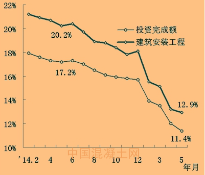 水泥下游產業商品混凝土和水泥制品業也未能幸免,產業下行態勢明顯。今年前5個月商品混凝土產量5.8億立方米,同比增長3.7%,增幅比上年同期下降10.4個百分點,水泥混凝土管道同比增長6.2%,比上年同期下降5.2個百分點,水泥混凝土電桿和預應力混凝土樁產量同比出現下降;今年混凝土與水泥制品類商品的平均出廠價格比上年同期下降2.5%。由于市場競爭激烈,混凝土與水泥制品業將水泥價格下降當成價格競爭的依仗,水泥產業的“讓利”并沒有通過產業鏈延伸到下游產業,今年前5個月規模以上水泥制造業利潤總額比上年同期下降168億元,而混凝土與水泥制品業利潤總額同比僅增長22億元,12.5%的利潤增幅也低于上年同期水平。