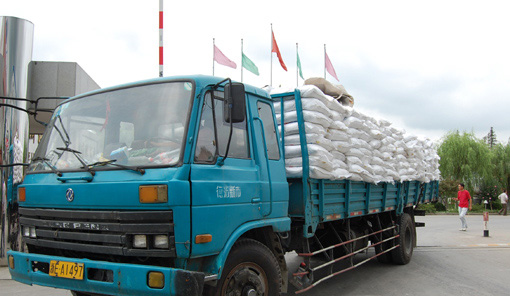 為什么在宏觀經濟調控趨緊、國內外經濟形勢不容樂觀的情形下五龍化工不但繼續加緊生產,還要擴大產能?在記者面前的五龍化工廠區門口,一輛輛滿截貨物的卡車不停進出(如圖) 。工作人員說:“國際要貨量增加,國內需求量也加大,工廠來不及生產,因此必須要擴大產能,滿足需求。現在五龍出口國家已經增加到20多個國家和地區。”