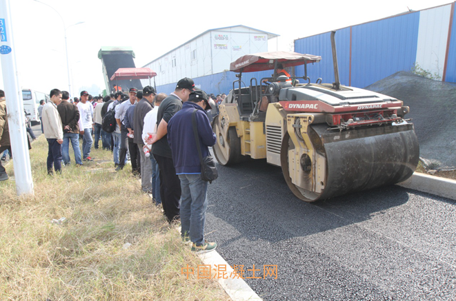 通過參觀應用于臨沂市政的南方路機瀝青廠拌熱再生設備和現場觀看熱再生料的道路攤鋪,與會代表對該設備的技術成果和環保效益給予了高度評價。山東九強路橋的任總對于瀝青熱再生技術頗為關注,這次現場參觀后驚嘆:從現場攤鋪的效果看,和原生料攤鋪的效果相同。