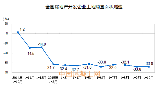 1-10月份,房地產開發企業土地購置面積17847萬平方米,同比下降33.8%,降幅與1-9月份持平;土地成交價款5794億元,下降25.2%,降幅收窄2.3個百分點。