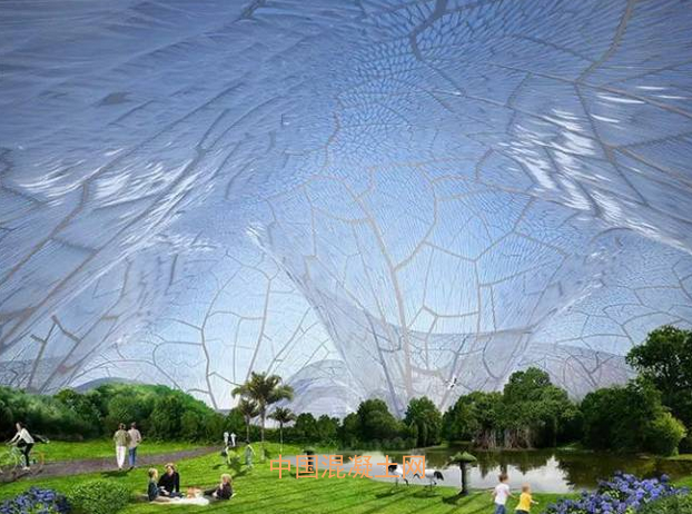該材料同時用在了英國著名的伊甸園工程中,那里匯集了幾乎全球所有的植物。Orproject公司希望再現伊甸園工程中建造植物園的想法,因此他們項目的渲染圖看起來延綿起伏。空氣膜結構的幾何紋理模仿蝴蝶翅膀和樹葉的脈絡。