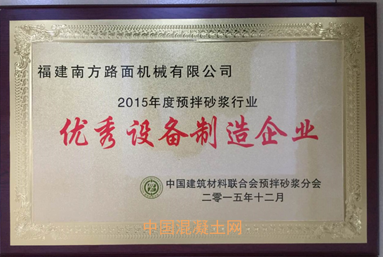 在預(yù)拌砂漿分會(huì)年會(huì)頒獎(jiǎng)典禮上,就2015年度預(yù)拌砂漿行業(yè)做出突出貢獻(xiàn)、優(yōu)秀生產(chǎn)企業(yè)、優(yōu)秀設(shè)備制造商、有較大影響力的企業(yè)和行業(yè)領(lǐng)軍人物等進(jìn)行表彰。南方路機(jī)榮獲2015年度預(yù)拌砂漿行業(yè)最具影響力品牌和2015年度預(yù)拌砂漿行業(yè)優(yōu)秀設(shè)備制造企業(yè)大獎(jiǎng),南方路機(jī)董事長(zhǎng)方慶熙被評(píng)為2015年度預(yù)拌砂漿行業(yè)領(lǐng)軍人物。