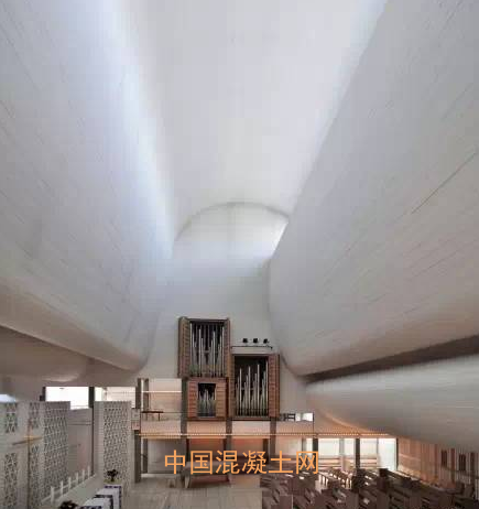 建筑結構由白色混凝土預制板和釉面白瓷磚進行外包裝飾,在內部,進行精準定位的琉璃瓦,有利于襯托出混凝土柔美的曲線。