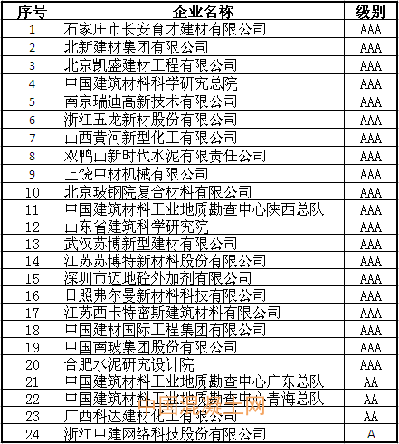 中國(guó)建材行業(yè)企業(yè)信用等級(jí)評(píng)價(jià)結(jié)果