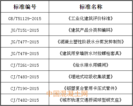 現批準《混凝土塑性階段水分蒸發抑制劑》為建筑工業行業產品標準,編號為JG/T477-2015,自2016年1月1日起實施。
