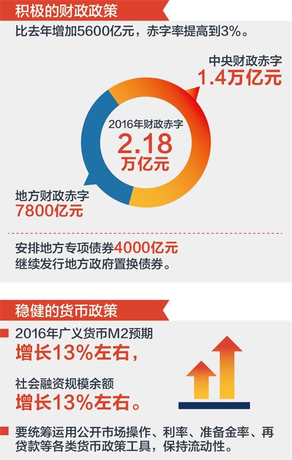 李克強表示,積極的財政政策要加大力度。今年擬安排財政赤字2.18萬億元,比去年增加5600億元,赤字率提高到3%。
