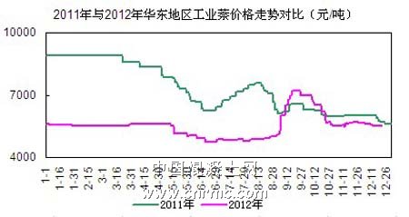 自2012年開(kāi)春以來(lái),工業(yè)萘市場(chǎng)就幾乎毫無(wú)起色。到了傳統(tǒng)的旺季,更是出現(xiàn)了不漲反跌的情況,甚至一度跌至4700元,這在近幾年的工業(yè)萘價(jià)格歷史上都可謂是罕見(jiàn)。不過(guò)值得慶幸的是,隨著十八大的順利閉幕,上游深加工停產(chǎn)企業(yè)的陸續(xù)重啟,將工業(yè)萘的價(jià)格推至了今年的頂峰,最高價(jià)時(shí)達(dá)到了7200元。好景不長(zhǎng),隨著余溫散去,工業(yè)萘價(jià)格跌回5300-5500元,目前處于盤整階段,迎接新一年的到來(lái)。
