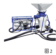 普通硅酸鹽水泥、粉煤灰等原材料一般由大中型生產企業提供,且基本配備了散裝運輸車實現散裝送料和打料。但干混砂漿經常使用的一些原材料如高鋁水泥、硫鋁酸鹽水泥、石膏、白水泥、重鈣粉、熟石灰、石英粉、成品石英砂、各種粉體添加劑、顏料、纖維、輕質骨料等基本以噸袋、50公斤、25公斤的包裝形式送料至砂漿工廠,搬運、存儲、二次搬運、上料至筒倉成為必須進行的耗時耗人工的工作,具備合理、高效的上料系統是現代干混砂漿生產線工藝設計的一個重要部分。斗式提升機較為適合砂的上料;而采用密相氣力輸送系統(圖1)輸送各種用量較大的粉料和輕質骨料如重鈣粉、石英粉、高鋁水泥等不失為高效的方式,速度快、筒倉切換方便、管道干凈;對于用量較小的添加劑和粉料而言,一種微型的能耗較低的氣力輸送系統m-tec Hurrican 140(圖2)更為靈活便捷,自帶空壓機僅5.5KW的能耗,輸送能力為約2-4m3/h。