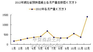 2012水泥市場的狀態(tài)持續(xù)低迷,加上房地產(chǎn)、高鐵建設量下滑等因素,對混凝土市場造成了一定的影響,但湖北省預拌混凝土供應量仍有所增長。