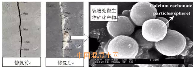 圖5利用微生物的復蘇和礦化機制實現混凝土對裂縫的自感知和自修復
